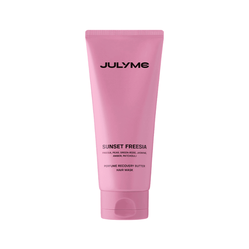 JULYME Perfume Recovery Butter Hair Mask Sunset Freesia 150 ml – sviestinė plaukų kaukė su frezijų kvapu. Maitina, atkuria ir suteikia švelnumo bei blizgesio.