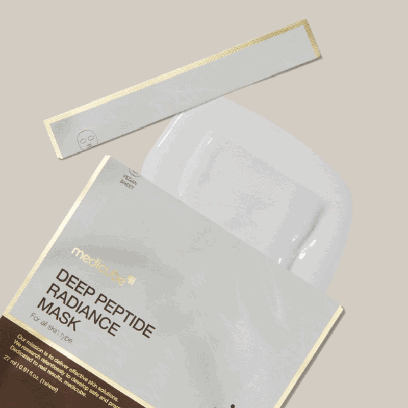 Medicube Deep Peptide Radiance Mask – veido kaukė su peptidais ir niacinamidu. Stangrina, skaistina ir suteikia odai švytėjimo bei gaivumo pojūtį.