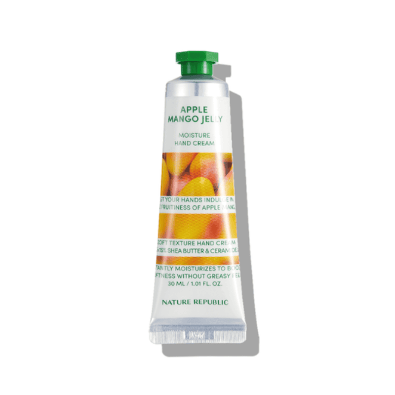Nature Republic Apple Mango Jelly Hand Cream – tai lengvos, tačiau intensyviai drėkinančios tekstūros rankų kremas, sukurtas kasdienei rankų odos priežiūrai. Ši priemonė padeda išlaikyti rankų odą minkštą, sudrėkintą ir apsaugotą nuo išsausėjimo, suteikdama komforto pojūtį visai dienai.