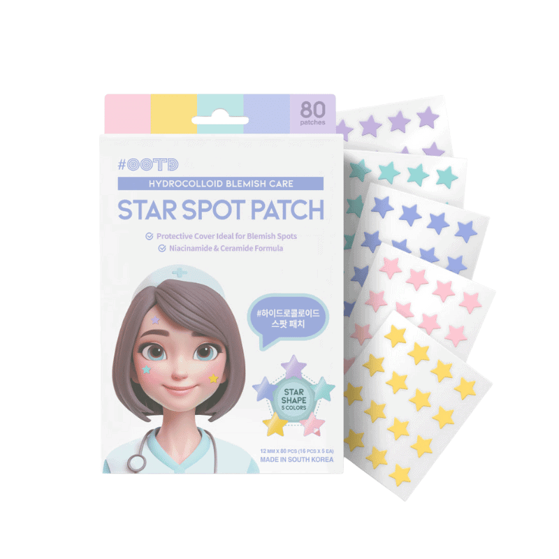 OOTD BEAUTY Star Spot Patch – efektyvūs, beveik nematomi pleistrai spuogams gydyti. Apsaugo, sugeria, greitina gijimą. 80 vnt. ilgalaikiam naudojimui.