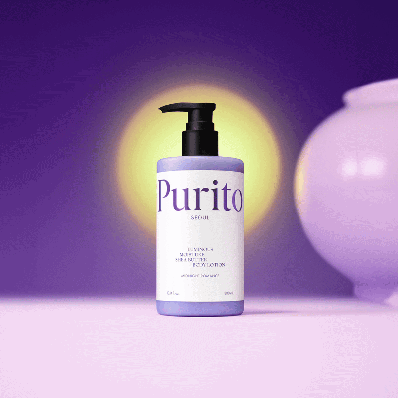 PURITO SEOUL Luminous Moisture Shea Butter Body Lotion Midnight Romance – elegantiškas drėkinimas jūsų odai