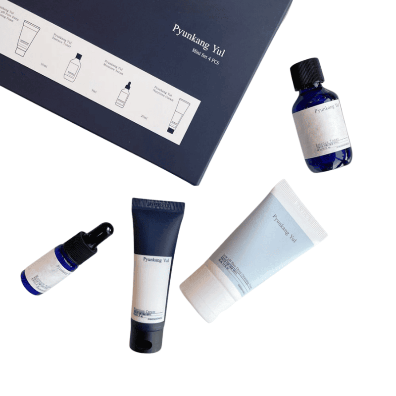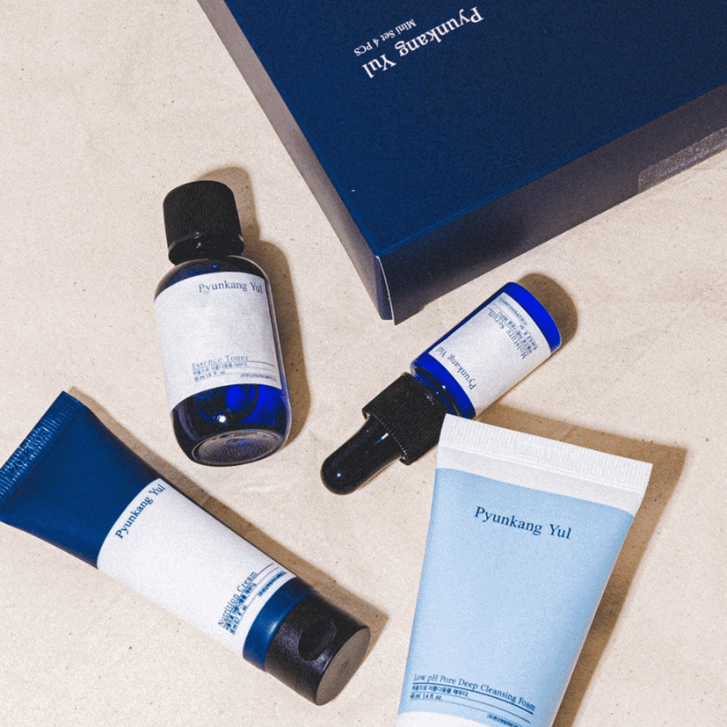 Pyunkang Yul Miniature rinkinys – valymas, drėkinimas ir maitinimas jautriai odai. Puikus kelionėms ar pirmam pažinčiai su prekės ženklu.