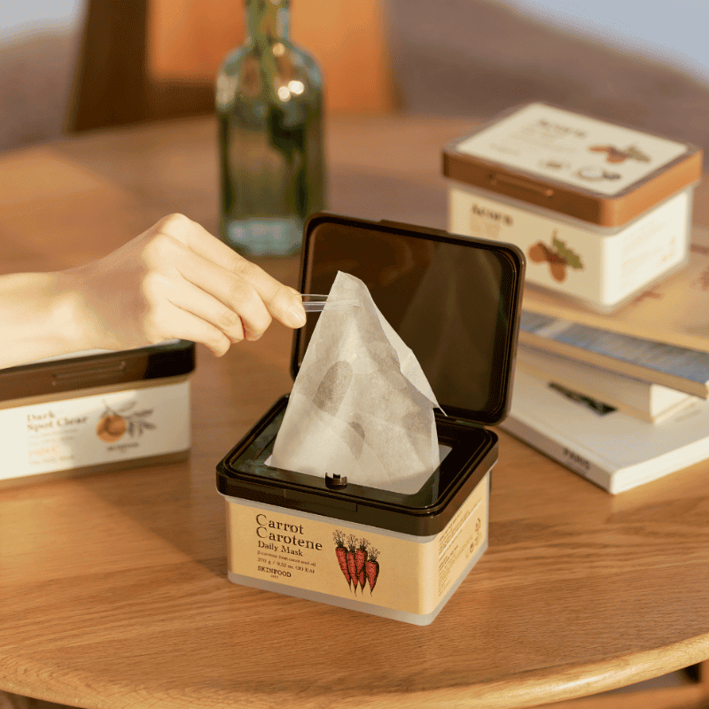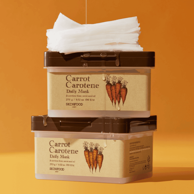 SKINFOOD Carrot Carotene Daily Mask – tai kasdienai pritaikyta veido kaukė, praturtinta morkų ekstraktu ir karotinu, kurie suteikia odai intensyvų drėkinimą, maitina ir stiprina apsauginį barjerą. Kaukė sukurta taip, kad būtų itin patogi naudoti – pakuotėje rasite individualiai sudrėkintus kaukės lapelius, kurie užtikrina greitą ir efektyvų rezultatą vos per kelias minutes. Tai idealus pasirinkimas užimtiems žmonėms, norintiems palaikyti sveiką odos būklę be didelių pastangų.